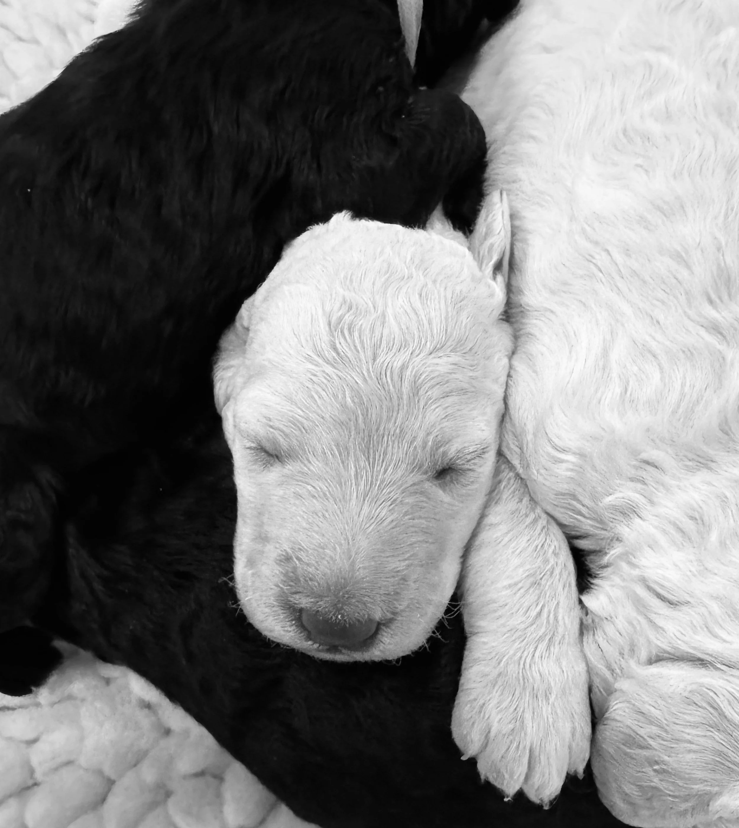 Additionally we expose puppies to the Early Neurological Stimulation protocol from approximately days 5-16 which helps puppies to better cope with stressful situations, increases problem solving ability and supports better physical health later in life.
